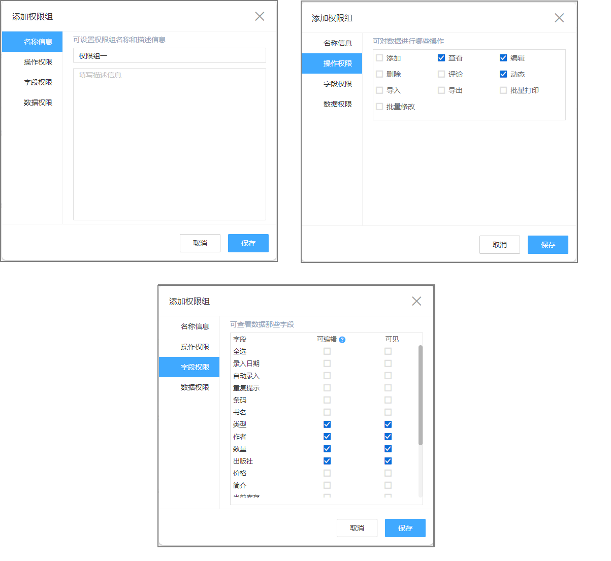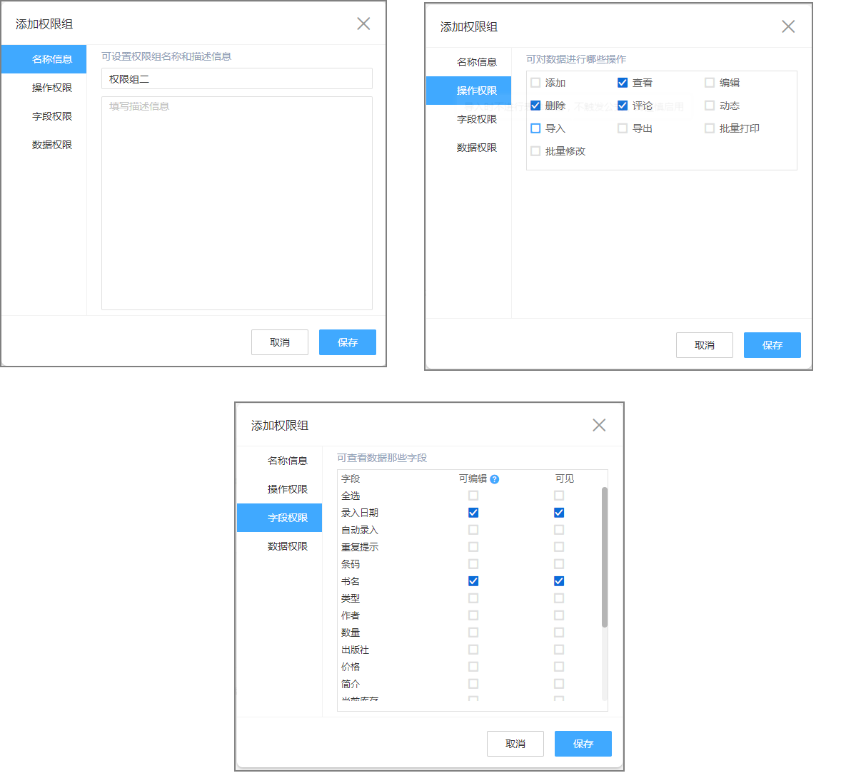 2、【新建权限组二】——【配置权限组二】——【权限组二添加同一成员】