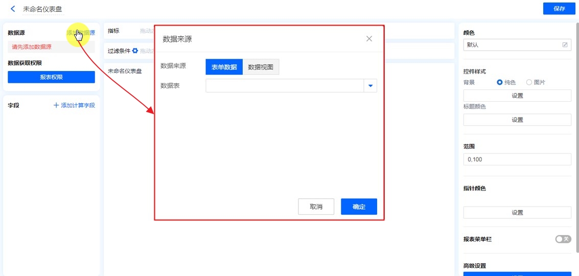 数据源就是指当前仪表盘表的数据来源,可以是表单、数据视图。