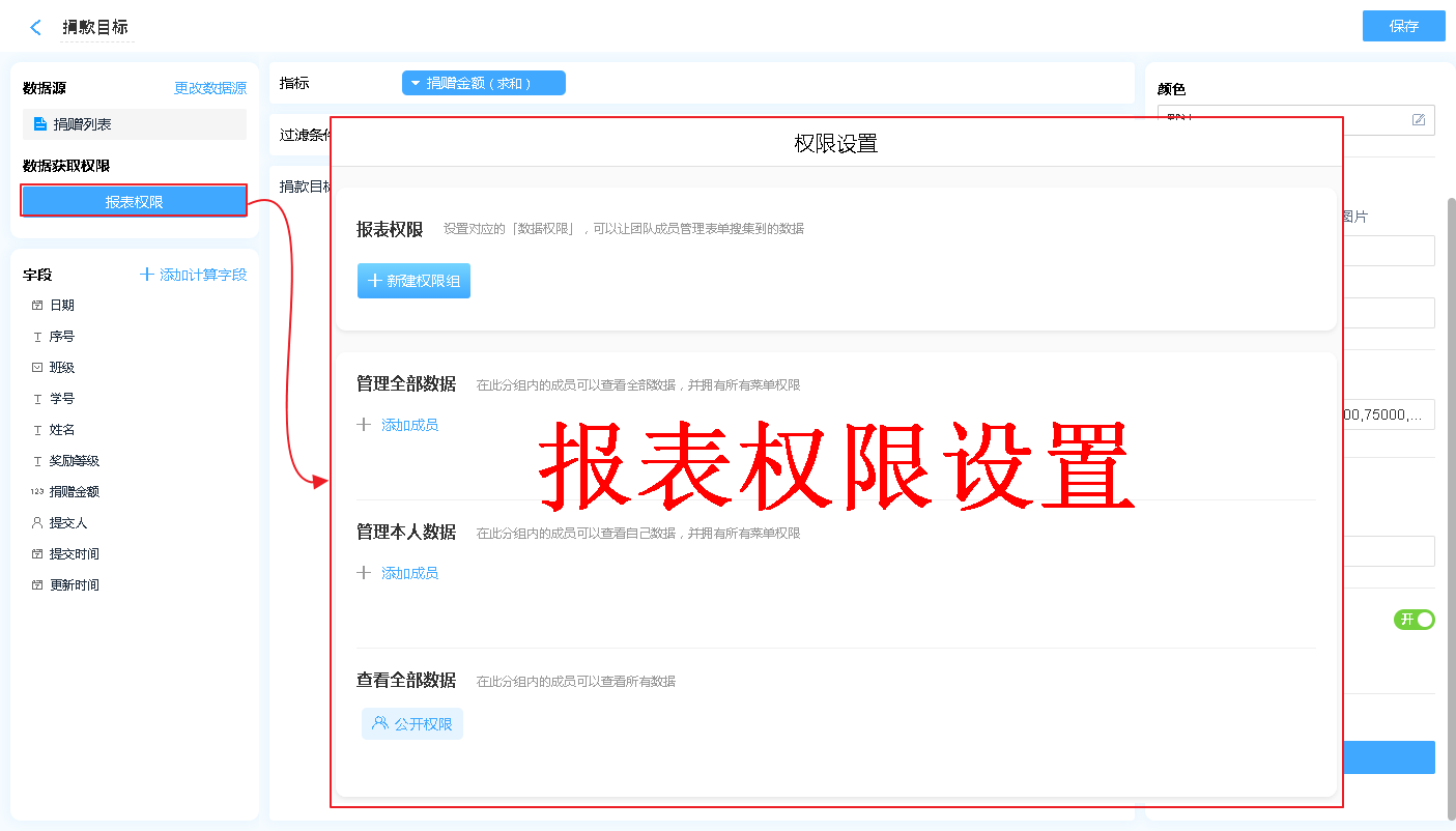 报表权限是指该报表的数据哪些人可以操作报表的数据,分别有什么操作权限。