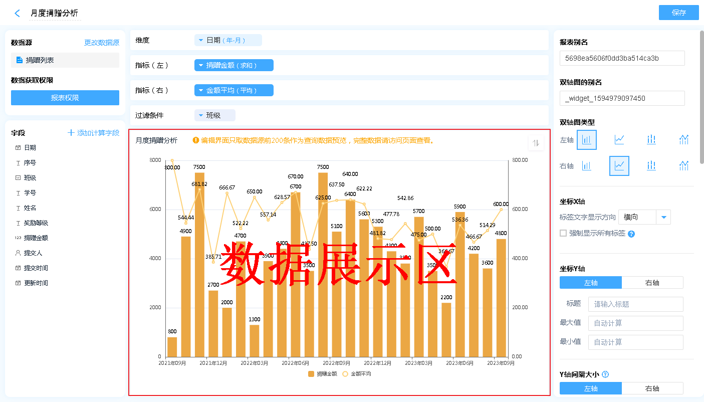 数据源就是指当前双轴图表的数据来源,可以是表单、数据视图。