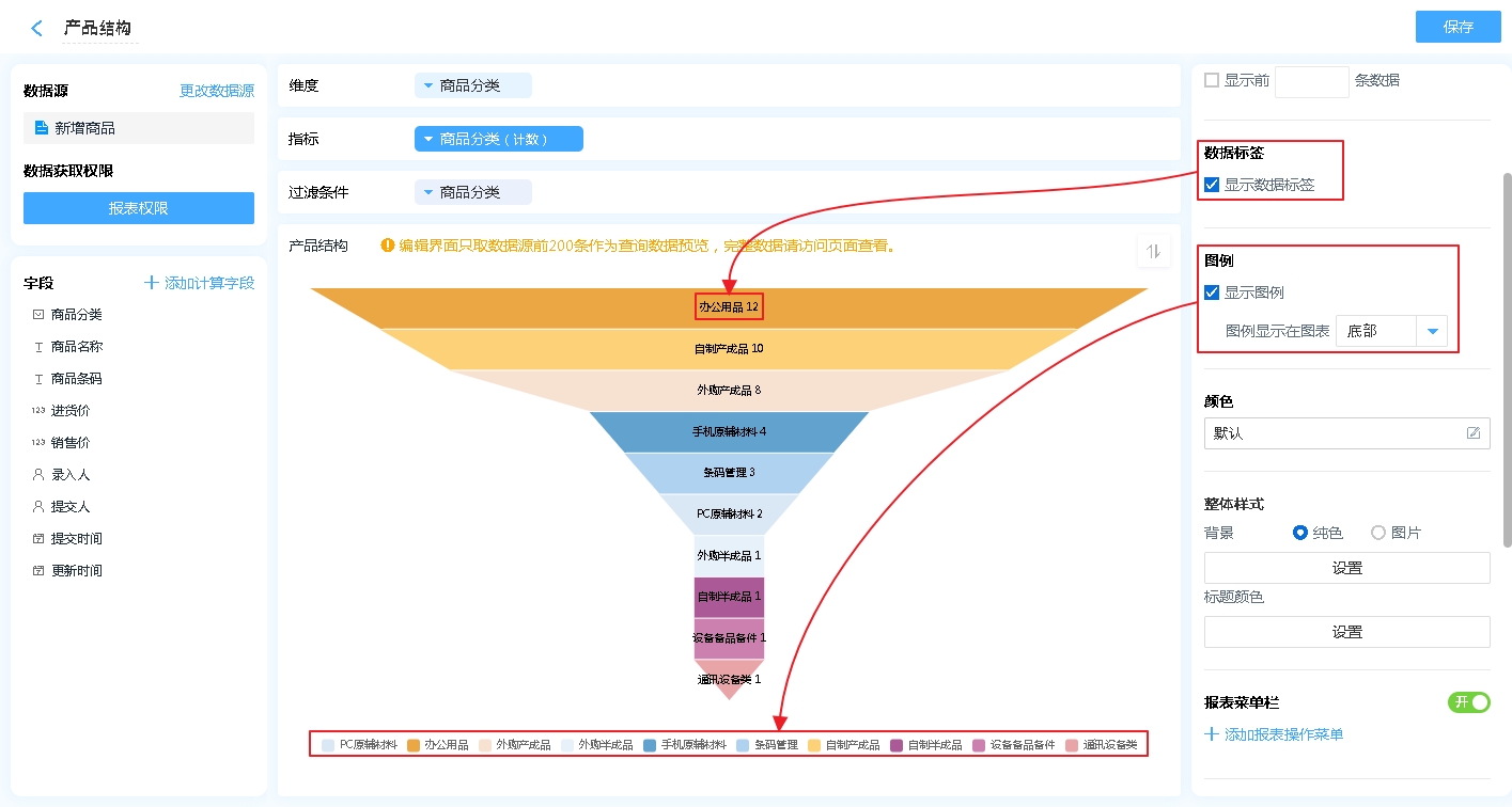 数据标签和图例都是对漏斗图的辅助显示,