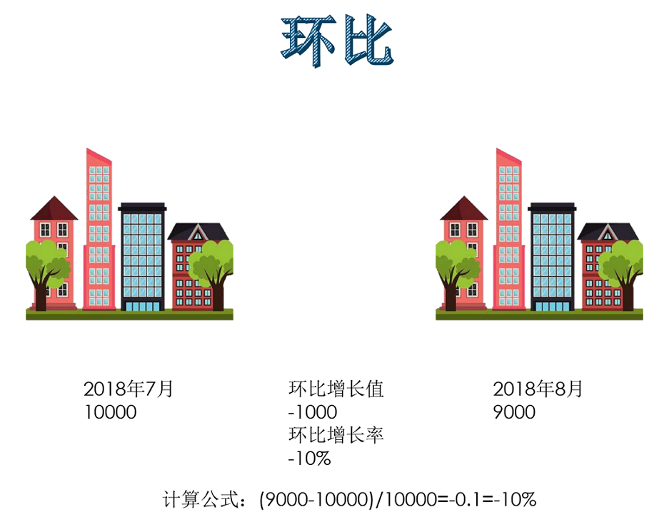环比是指在某个时间【如:2019年】内部的某个时间区间【如:7月和8月】的对比。