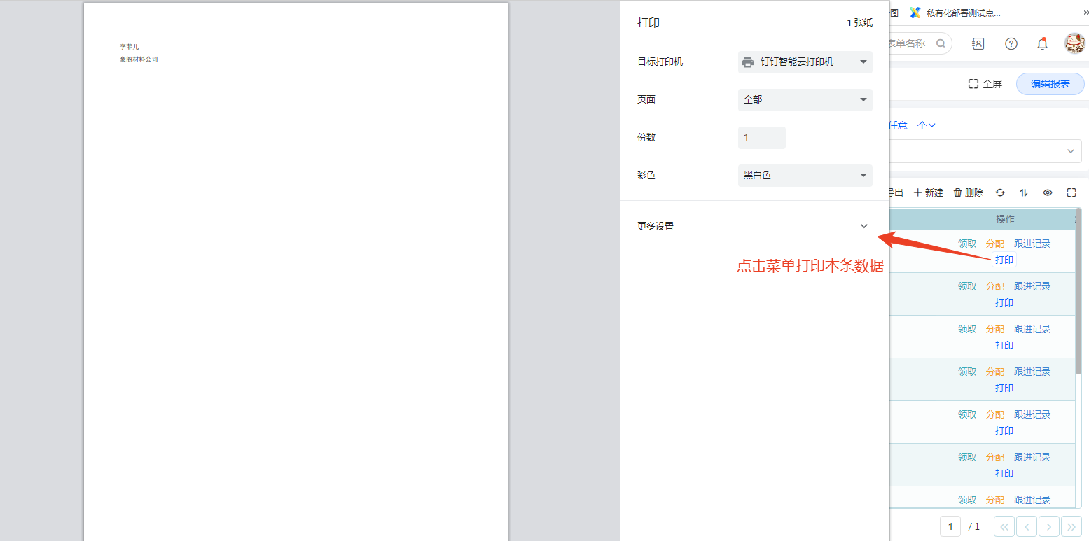 当操作模式为打印时,设置表单打印模板,点击菜单即可实现打印数据。