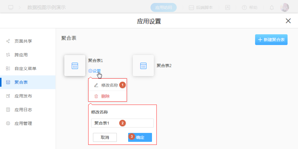聚合表表单标题:用于数据联动关联表单选取时,方便区分名称。