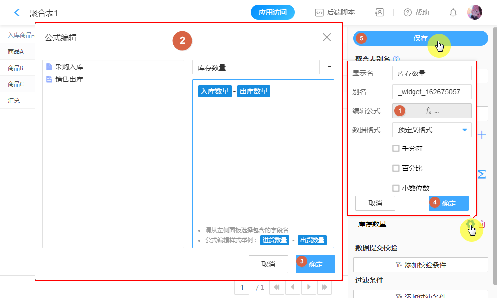 修改聚合表计算公式,生效后按新公式重新计算聚合数据。