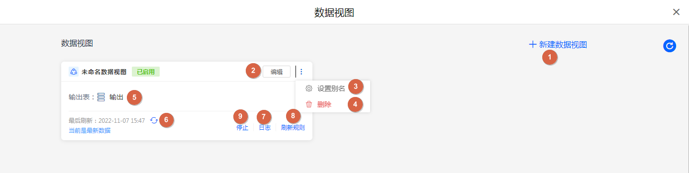 • 编辑可以对创建好的数据视图进行首次设计或二次修改。