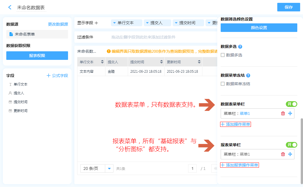 数据表菜单设置