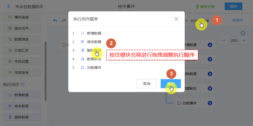 动作节点最多只能配置 5 个,在此可以调整执行顺序。